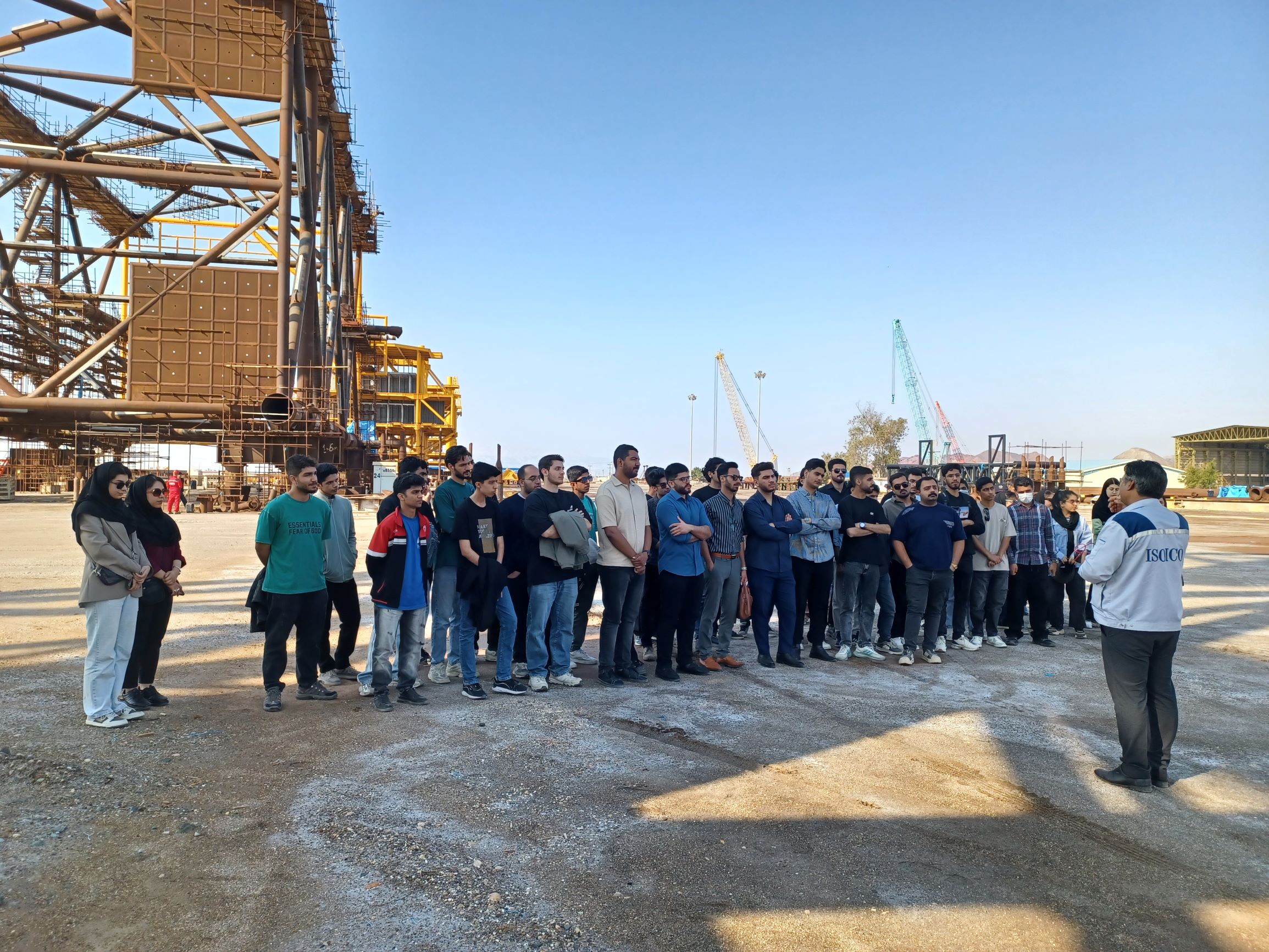 روایت خودباوری صنعتی در طی بازدید دانشجویان دانشکده فنی و مهندسی دانشگاه هرمزگان از شرکت کشتی‌سازی و صنایع فراساحل ایران (ایزوایکو)