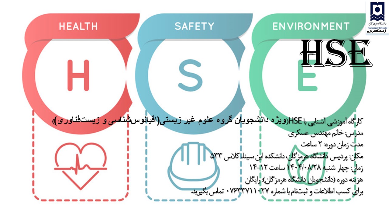 دوره آموزشی آشنایی با HSE(ویژه دانشجویان گروه علوم غیر زیستی(اقیانوس‌شناسی و زیست‌فناوری))
